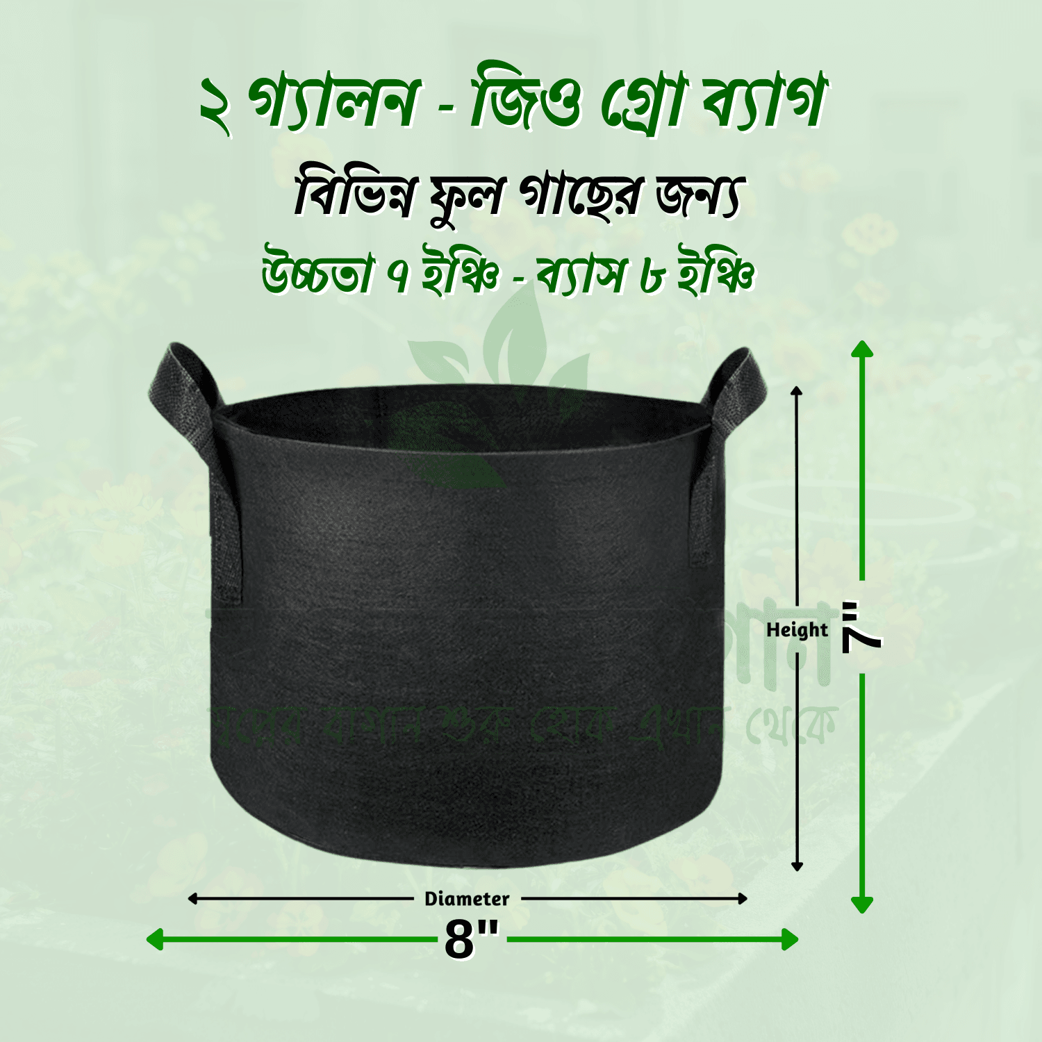 উন্নতমানের জিও গ্রো ব্যাগ আপনার স্বপ্নের ছাদ বাগানের জন্য অন্যতম সমাধান।টিন কিংবা প্লাস্টিক হাফ ড্রামের বিকল্প এবং আধুনিক প্রযুক্তির উদ্ভাবন হল জিও গ্রো ব্যাগ। যা পরিবেশ বান্ধব, পানিতে নষ্ট হয়না এবং টেকসই, পুনরায় ব্যবহারযোগ্য। ছোট বড় সব ধরনের গাছ লাগানো যায়। আধুনিক পানি নিষ্কাশন ব্যবস্থার ফলে গাছকে পানি জমাট সমস্যা হতে রক্ষা করে।